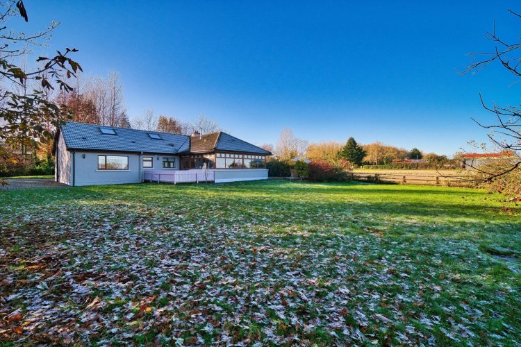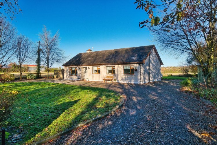 • Coonan Property is delighted to present a detached three-bedroom bungalow to approx. 152 sq.m (1,637sq. ft), sitting on approx. 0.56 acres • Accommodation comprises of entrance hall, living room, open plan kitchen/ living/dining area, utility room, three bedroom, en-suite and family bathroom • Approached via electric gates, with lawn front and rear, patio areas, mature specimen trees & shrubs, garden shed and stud rail & hedging surround • Excellent finishes throughout, featuring hardwood floors, granite work top kitchen & island, two corner jacuzzies, solid fuel stove, high end integrated appliances, feature red brick kitchen & living room walls • Ideally positioned near the much sought-after area of Kilbrew with convenient access to Ashbourne (7.6km), Ratoath (5.8km), and Dunshaughlin (8.3km), all offering a wide range of local amenities including shops, schools, and parks • The area boasts superb recreational facilities such as golf clubs, GAA and rugby clubs, Fairyhouse Racecourse, the Hill of Tara, and Emerald Park • Excellent transport connections with local bus services, quick access to the N2 (4.3km) and M3, and easy commuting to Dublin city and Dublin Airport